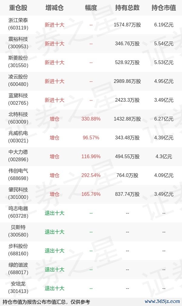 本站消息,4月21日永赢基金旗下张璐管理的永赢先进制造智选混合型发起式基金公布一季报,近1年净值增长率82.84%。与上一季度相比,该基金前十大重仓股新增浙江荣泰,震裕科技,斯菱股份,凌云股份,蓝黛科技;并对北特科技增仓1100.33万股,为该基金第一大重仓股;鸣志电器诚信配资,贝斯特,步科股份,绿的谐波,安培龙等退出前十大重仓股;详细数据如下: